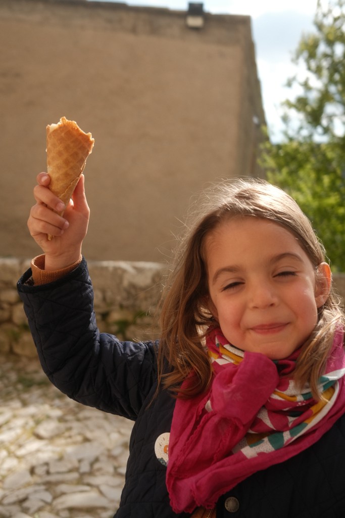 Lou et moi sommes allées visité Banon et sa fameuse librairie le Bleuet (que j’ai personnellement trouvé un peu vieillotte et surcotée) mais tout à côté il y a un très bon glacier (sorbet châtaignes avec des éclat de marrons glacés pour moi et melon pour Lou)